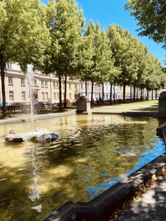Der Bordeauxplatz ist ein Ort mit französischer Atmosphäre und umgeben von Linden im Franzosenviertel Haidhausens.