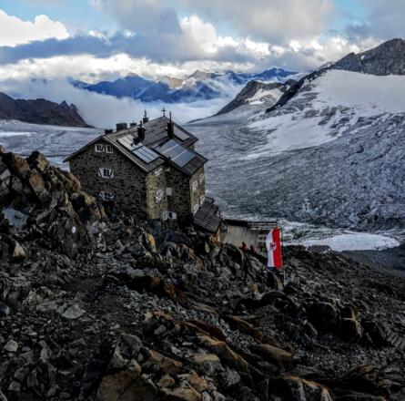 Hoch über der Gletscherwelt der Ötztaler Alpen oberhalb der Scheidelinie zwischen Gepatsch- und Kesselwandferner thront das Brandenburger Haus. Wer es bis hierhin - ein Zugang ist nur über Gletscher mit spaltenreichen Stellen, so dass eine Seilschaft mehr als empfehlenswert ist - geschafft hat, wird von einer grandiosen Aussicht auf einige der höchsten Berge der Ostalpen belohnt.