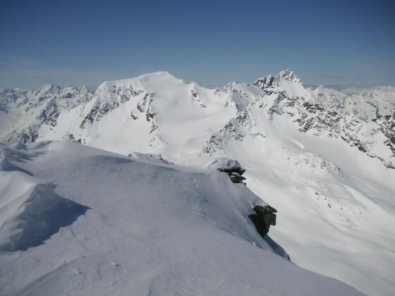 Lange Skitourenrunde mit einem einfachen Anstieg über das Horlach- und Zwieselbachtal und nach alpiner Überschreitung der Larstigscharte einer grandiosen Nordabfahrt über den spaltenreichen Larstigferner.