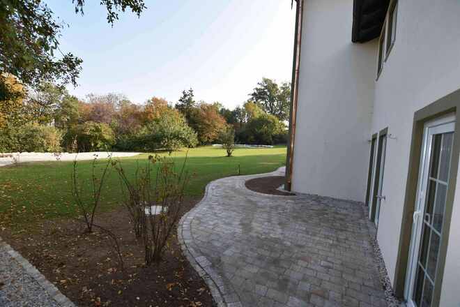 Ausstattung: 3 Appartements, 2 App. mit ca. 45 qm Nutzfläche, 1 App. mit ca. 75 qm; alle Einheiten verfügen über mindestens einen eigenen Balkon bzw. Terrasse und sind sehr komfortabel ausgestattet (u.a. Eiche-Massivparkett, Doppelbett, Esstisch, Schreibtisch, Küche mit Geschirrspüler und Mikrowelle, Sitzecke, begehbarer Kleiderschrank, WLAN, Smart-TV, sowie Designerbad). Bodentiefe Fenster lassen viel Licht herein und eröffnen den Blick in den malerischen Garten. Besonderheit: Das Gebäude liegt im Aussenbereich in einer sehr schönen, weitläufigen Umgebung; ein Bauernhof, sowie eine Reitanlage, befinden sich in unmittelnbarer Nachbarschaft. Sowohl das Strandbad als auch die Ortszentren von Rimsting und Prien sind in weniger als 20 Gehminuten erreichbar.