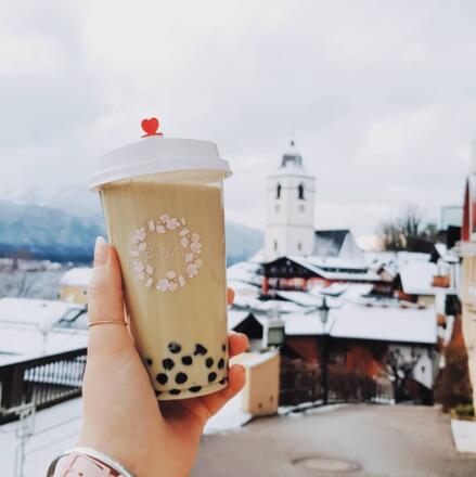 Ein neues Instagrammable-Café, das Bubble Tea (Boba Tea) in vielen verschiedenen Milch- und Fruchtaromen serviert.