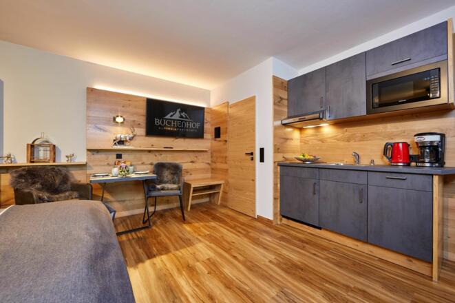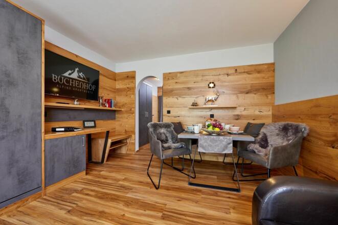 Die Alpine Apartments Buchenhof befinden sich auf der Sonnenseite von Grainau mit einen einmaligen Blick auf das Alpspitzmassiv. Alle unsere Alpine Apartments sind im Landhausstil eingerichtet und verfügen über eine komplette Küche mit Geschirrspülmaschine und Mikrowelle, sowie SAT-TV, Radio, Safe, Balkon oder Terrasse mit Blick auf das Zugspitzmassiv. Ganzjährig beheizt. Auf Wunsch: Reichhaltiges Frühstücksbuffet oder Brötchenservice. Waschmaschine und Wäschetrockner. Parkplatz. Garage auf Anfrage. Haustiere auf Anfrage. W-Lan-Internetzugang für Ihre mobilen Geräte. Eine Sauna lädt Sie nach einem tollen Pistentag zum verweilen ein. Auf unserem 8500 qm grossen Grundstück finden Sie Grill möglichkeiten und versteckte Winkel zum Relaxen und Erholen. Wir würden uns freuen, Sie bei uns begrüssen zu dürfen und wünschen Ihnen eine gute Anreise. Ihr Alpine Apartments Buchenhof Team