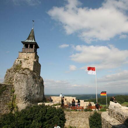 Vom Wahrzeichen der Frankenalb (gleichzeitig höchster Punkt mit 634 m NN) hat man einen weiten Rundblick, der bei klarem Wetter bis zum Fichtelgebirge reicht.Die Burg Hohenstein war von Anfang an eine Verwaltungsburg und Sitz eines Vogtes, Pflegers oder Amtmannes. Über den Bau selbst sind keine urkundlichen Nachrichten vorhanden, ihre Entstehung dürfte in die zweite Hälfte des 11. Jahrhunderts zurückreichen.Von 1505 - 1806 im Besitz der Reichsstadt Nürnberg, wurde die Burg mehrfach zerstört. Erhalten blieb der Palast mit moblierter Burgstube, außerdem das unterhalb gelegene Pflegamtsgebäude.Öffnungszeiten: