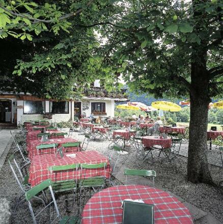 In urgemütlichen Gasträumen, die auch für kleine und große Familienfeiern geeignet sind und im sonnigen Biergarten, zum Teil unter alten Kastanienbäumen, werden Ihnen deftige, kalte und warme Brotzeiten, hausgemachte Kuchen und Strudel sowie eine reichhaltige Auswahl an Kaffee- und Eisspezialitäten angeboten.