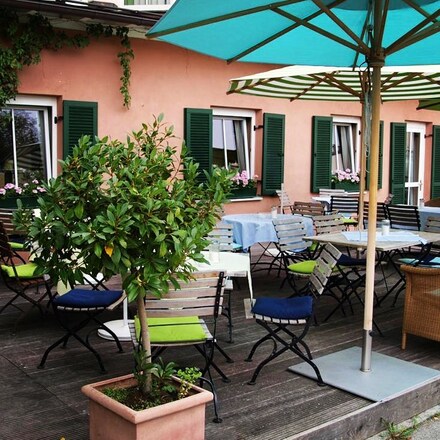 Wir verwöhnen unsere Gäste ganztags mit selbst gemachten Kuchen und Dinzler Kaffee. Unsere Küche ist bis zum späten Nachmittag durchgehend geöffnet.