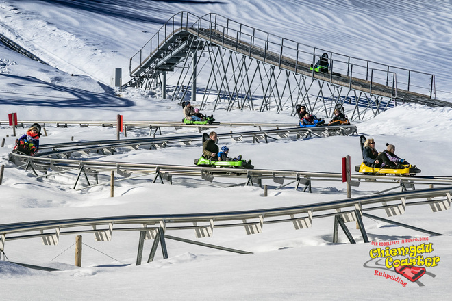 Die Schlitten des Chiemgau Coasters sind jeweils für zwei Personen ausgelegt, damit Sie die rasante Fahrt gemeinsam genießen können. Auf ca. 1.100 m Länge erstreckt sich die Bahn mit Kreisel, Steilkurven, Jumps und Wellen. Sie erreichen dabei eine Höchstgeschwindigkeit von ca. 40 km/h.