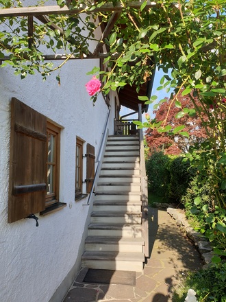Helle und gepflegte Ferienwohnung im Herzen von Greimharting, Ortsteil von Rimsting. Der nach Süden ausgerichtete Wohn- und Eßbereich, sowie der gemütliche Balkon, bieten einen wunderschönen Blick auf die Kampenwand und die angrenzenden Chiemgauer Berge. Der Chiemsee ist in unmittelbarer Nähe mit seinen bekannten Inseln Herrenchiemsee (Schloss von König Ludwig II. von Bayern) und Frauenchiemsee (Kloster). Direkt vor der Haustüre starten verschiedene Wander- und Radwege wie der große Rimstinger-Rundwanderweg mit Anschluss zum Erlebnisweg und Obst- und Kulturweg Ratzinger Höhe. Eine Unterstellmöglichkeit für das Fahrrad ist vorhanden.