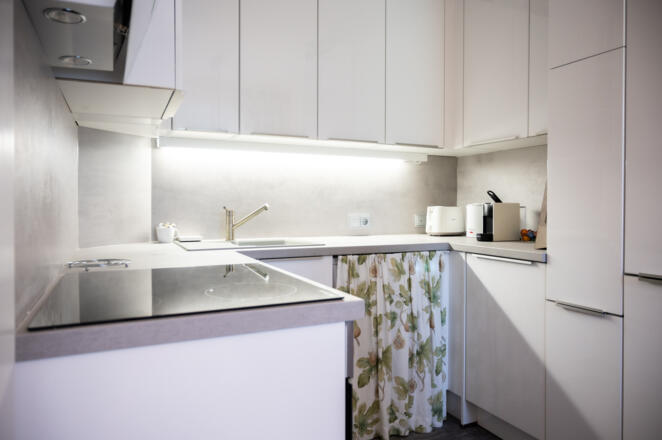 Voll ausgestattete Küche mit E-Herd, Mikrowelle, Nespresso-Maschine, Filtermaschine, 2 SAT-Fernseher usw.