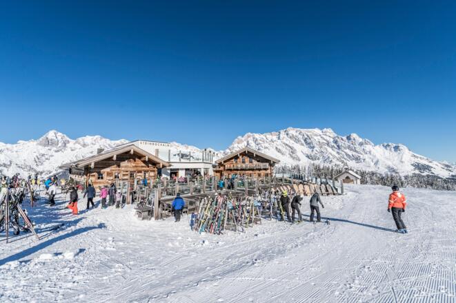 Wenn sich die Pisten langsam leeren und die Sonne hinter dem Kalkriesen untergeht, taucht die Skiregion in ein Meer aus verschiedensten Farbnuancen - ein Naturschauspiel perfekt zum Chillen mit einem coolen Cocktail und cooler Musik am Berg.