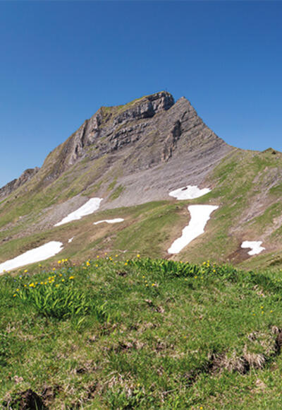 Die Damülser Mittagsspitze ist mit ihren 2.095 m der höchste Berg im Gemeindegebiet Damüls.