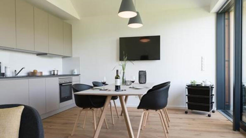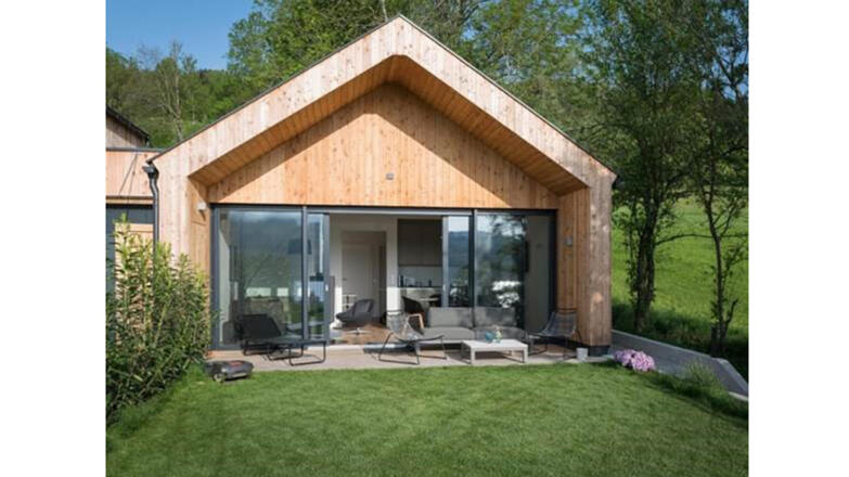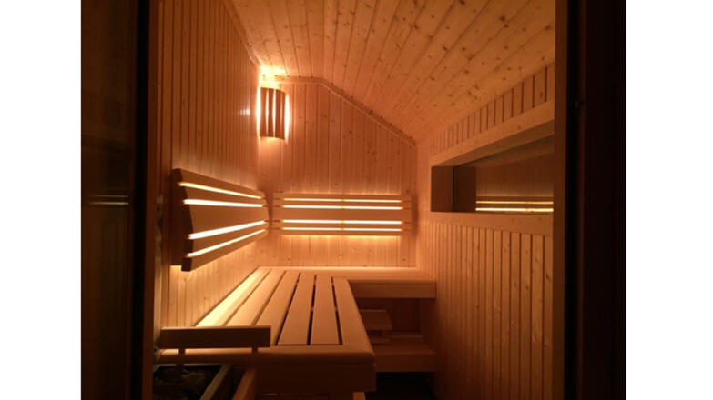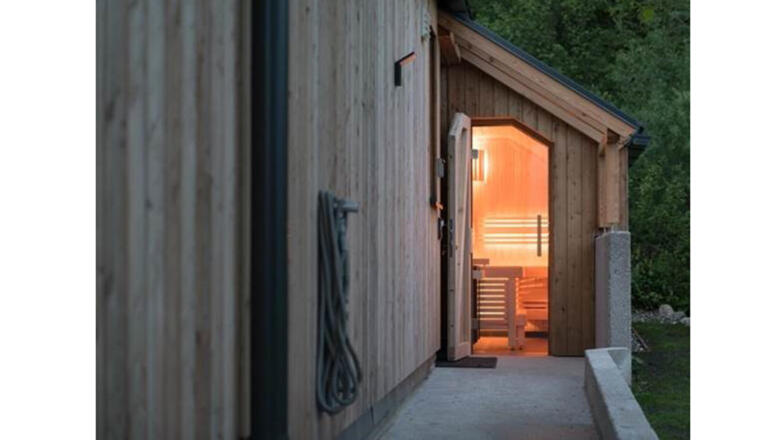 Verfügt über 2 Schlafzimmer, einem Wohnraum mit voll ausgestatteter Küche und drehbaren Kaminofen sowie einer Außen-Sauna.