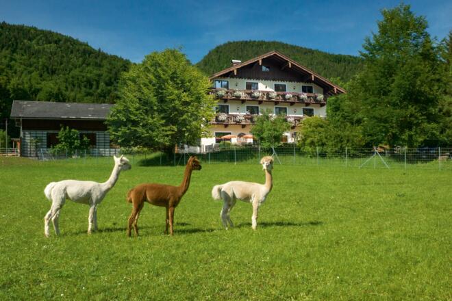 Direkt vor dem Haus können Sie ganz besondere Tiere beobachten: eine kleine Herde Alpakas. Sie bestechen mit ihrem lustigen Gesichtsausdruck und ihrem freundlichen und neugierigen Gemüt. Lassen Sie sich von diesen liebenswürdigen Tieren in den Bann ziehen - besondere Urlaubsfotos sind garantiert! Ein ganz besonderes Erlebnis ist eine Wanderung mit den Alpakas - kontaktieren Sie uns gerne für weitere Infos.