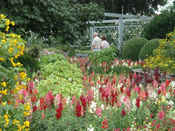 Die Schauanlagen vereinen Gartenelemente aus Asien, dem Mittelmeerraum und England in einem einzigartigen 30.000 m² großen Ensemble. Eine der Hauptattraktionen ist der japanische Landschaftsgarten mit Großbonsais, Teichen, Wassertreppen, Findlingen und Bogenbrücke. Wechselblumenbeete faszinieren den Besucher auf über 2.000 m² mit jahreszeitlichem Blütenflor.