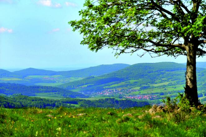 Vorbei an der deutsch-deutschen Grenze geht es um den Habelsberg hinein in die Fachwerkstadt Tann mit dem eindrucksvollen Stadttor.