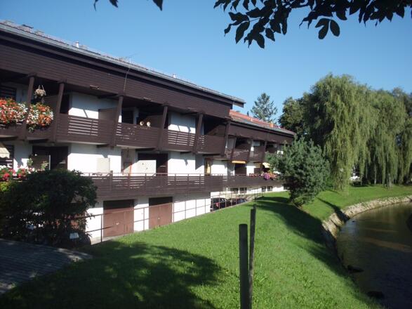 Gepflegte Wohnanlage mit großer Liegewiese, großem Hallenschwimmbad und ca. 900m vom Chiemseeufer entfernt