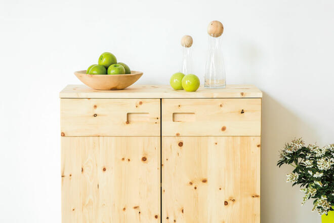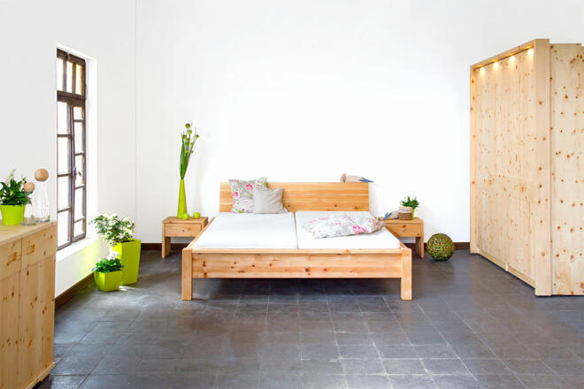 Natur pur nicht nur in unseren Möbeln, sondern auch in den kleinen Dingen aus Zirbenholz: Obstschale, Brotdose, Wasserkaraffe mit einer Zirbenholzkugel, Kissen mit Zirbenholzfüllung und vieles mehr.