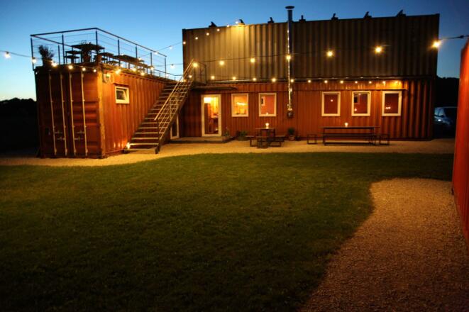 Die Moserei vereint in ihrem eigenwilligen Gebäudekomplex gebrauchter Hochsee - Container drei Bereiche: Bar, Atelier & Galerie.