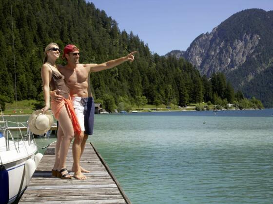 Der Plansee ist der zweitgrößte natürliche See Tirols. Die Berge und Felsen spiegeln sich in dem glasklaren Wasser. Pack die Badehose ein!