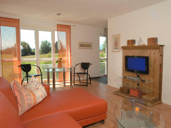 Die moderne, geschmackvolle und elegante Einrichtung lässt Ihren Urlaub von der ersten Minute an zum Erholungserlebnis werden. Gemäß unserem Motto: Ankommen-Auspacken-Wohlfühlen! Die voll ausgestattete Küche lädt zum Kochen und Genießen ein. Wollen Sie sich lieber verwöhnen lassen, dann fahren Sie doch einfach bequem mit dem Lift in das Restaurant im Erdgeschoss. Anschließend relaxen Sie in Ihrem gemütlichen Wohnraum mit LCD-Fernseher und Stereoanlage.