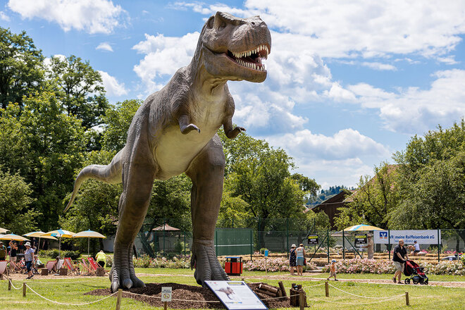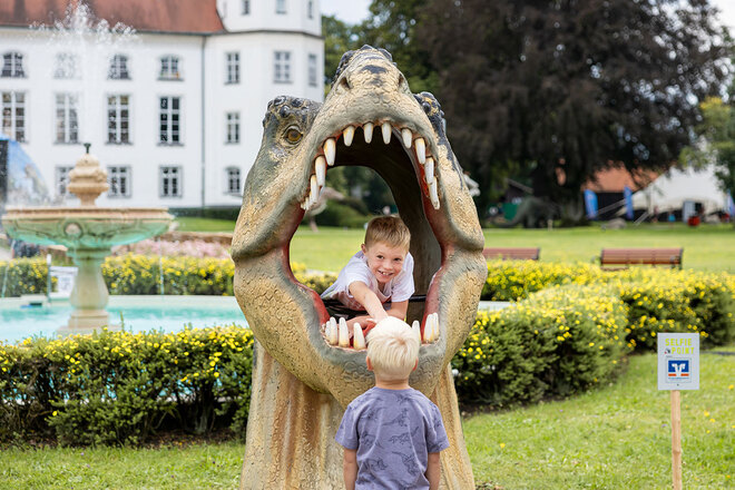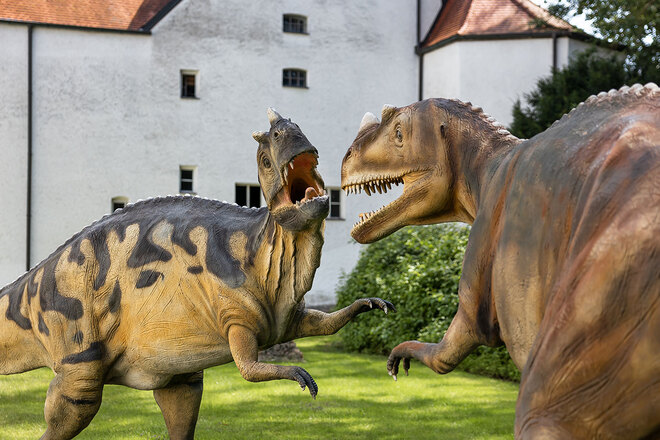T-Rex, Triceratops und Co. werden auf den weitläufigen Wiesen und in den Gemäuern der Schlossanlage heimisch sein und Besucher aus Nah und Fern zu einem Freizeitvergnügen der besonderen Art locken. Hier können kleine und große Dino-Fans in die geheimnisvolle Vergangenheit unseres Planeten eintauchen.
