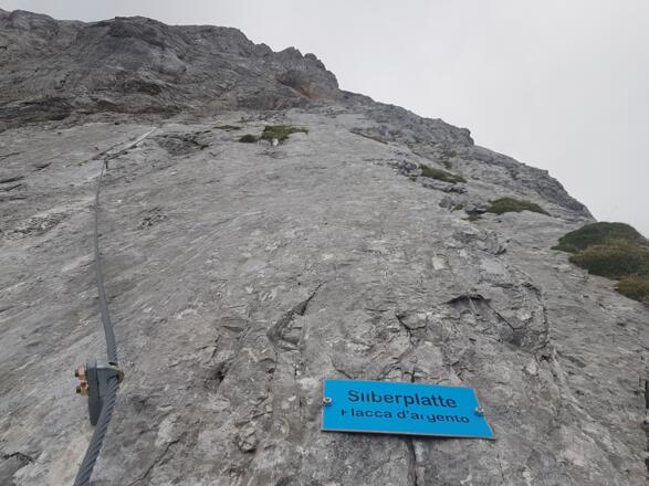 Keine Ausstiegsmöglichkeiten entlang des Klettersteiges! Daher sollte die Tour nur bei stabilem Wetter in Angriff genommen werden. Im Mittelteil gibt es ein weisses Statikseil, welches zu einem Biwackplatz unter einem Felsen führt. Bei drohendem Gewitter ist es die einzige Stelle die Schutz bietet.