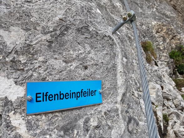 Die Route führt uns über den Elfenbeinpfeiler und das Schwitzerwandl bis zum Kartitscherköpfl, welches sich als Rastplatz eignet. Nach der letzen steilen Wandstelle im Schwierigkeitsbereich D erreichen wir den einzigen möglichen Biwackplatz. Danach lassen nun die Schwierigkeiten etwas nach, jedoch wird der Fels etwas splittriger und nicht mehr so kompakt. Im Weiterweg klettert man nun direkt an der Gratkante bis dann der Kletterstei mit einer plattigen Querung in einer Schutthalde endet. Vom Ausstieg entlang der Punktmarkierung zum Wanderweg und auf diesem links zum Gipfel. Am Gipfel wird man mit dem Europakreuz belohnt.