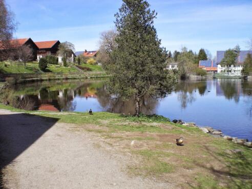 Dorfweiher Gumpen mit verschiedenen Wasservögeln und schönem Spazierrundweg.