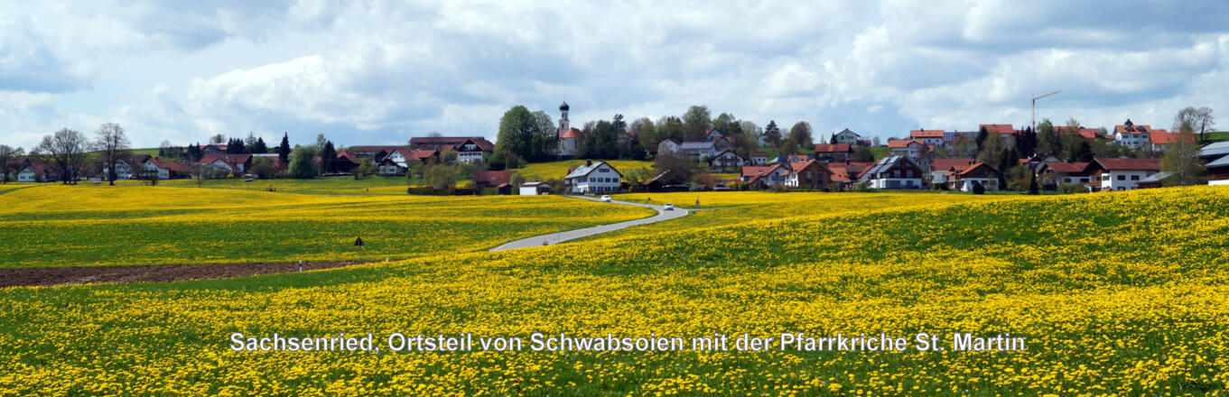 Sachsenried Ortsmitte - Kirchenstraße - Waldhausstraße - Sachsenrieder Forst - 1. Weggabelung nach rechts Richtung Gehölzental - wieder rechts haltend auf Dornachweg aus Forst heraus - kurzer Abschnitt auf Staatsstraße 2014 zurück nach Sachsenried
