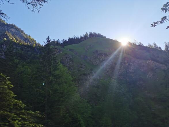 Die Tour beginnt oberhalb von Absam am Halltal Parkplatz. Hinein geht es zuerst auf einem Fortsweg entlang des Baches in das Halltal. Nach einem kurzem Stück biegen wir links auf den Fluchtsteig ab, der uns in ca 1 1/2h zum Gasthaus St. Magdalena bringt.