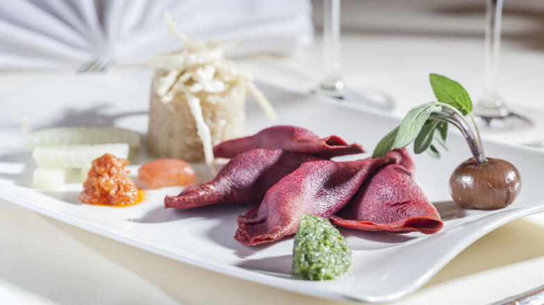 Genießt ein ausgezeichnetes Essen im Gastgarten des Landhotel Agathawirt während eure E-Bikes ebenfalls mit neuer Energie getankt werden.