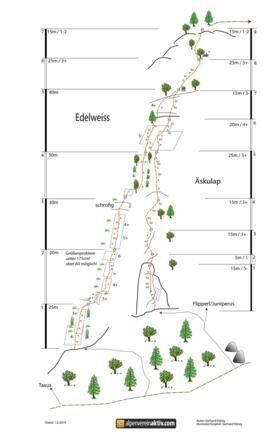 Mehrseillängenrouten im unteren Schwierigkeitsgrad mit wenig Zustieg gibt es nicht viele. Am Plombergstein in St. Gilgen wurden neben der seit vielen Jahren bestehenden Route "Juniperus" in kurzer Zeit neue Klettereien geschaffen. "Edelweiss" entstand im Frühjahr 2015. Bedingt durch die südostseitige Lage sind die Kletterrouten oft auch im Winter begehbar. Vor einigen Jahren gab es allerdings Probleme mit den Grundbesitzern. Aus diesem Grund ist unbedingt der Parkplatz an der Bundesstraße zu benützen.