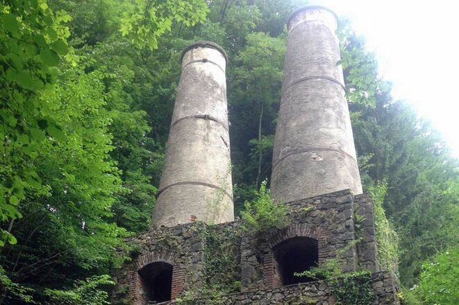 Ruinen der alten Zementfabrik im Litzldorfer Bergwald in der Nähe des Wasserfalls.