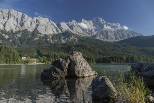 Der Eibsee liegt am Fuße der Zugspitze in 1000 m Höhe und ist zu jeder Jahreszeit schön. Es führt ein gut begehbarer, zirka 7 km langer Wanderweg um den See.