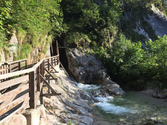 Am Klamm-Eingang befindet sich ein kleiner Felspool, Abkühlung am Bachlauf bis zur Saalach möglich.