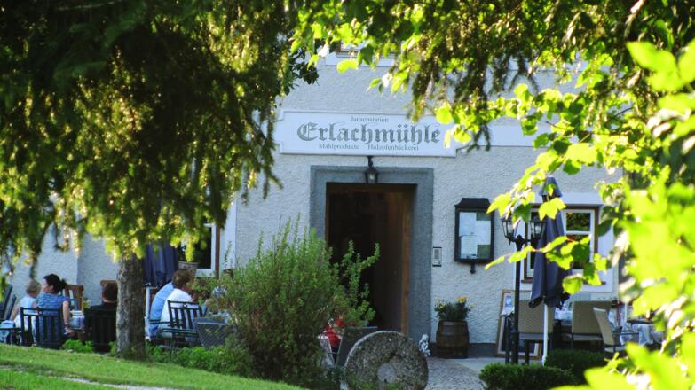 Inmitten der wunderschönen Landschaft von Mondsee, umgeben von Wiesen und Wäldern am rauschenden Mühlenbach liegt unsere Erlachmühle.