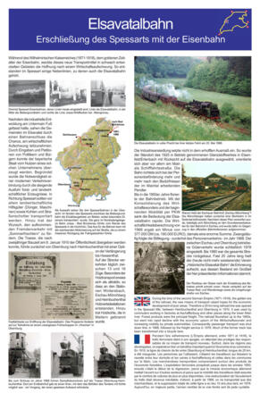 Vom Friedhof aus geht es los zur Burgruine Wildenstein. Zwei aufeinander folgende Infotafeln erläutern die Geschichte der Anlage und des Weilers Wildenstein sowie archilogische Erkenntnisse, die von den Burgfreunden Wildenstein erarbeittet wurden. Sie haben sich dem Schutz und der Pflege der Burg verschrieben (www.burgfreunde-wildenstein.de) . Weiter führt der Weg sanft bergab bis zur Elsava, wo wir uns an der Station "Elsavatalbahn und Hesselsmühle" wieder in Richtung Eschau wenden. Sie laufen jetzt durch den Ort, vorbei an der Sportanlage, dem "Allten Rathaus" (heute ein Museum) und der Kirche. Nun geht es wieder zurück über Offenlandschaft zurück zum Friedhof.