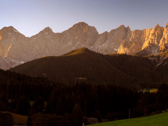 Der Dachstein mit seinen mächtigen, sonnigen Südwänden gehört zu den eindruckvollsten Bergpersönlichkeiten im Alpenraum. Fast 1.000 m ragen die nahezu senkrechten Felsmauern über den tiefgrünen Almen von Ramsau am Dachstein empor und locken neben Wanderern und Bergsteigern auch zahlreiche Künstler an, die sich von dieser einmaligen Landschaft inspirieren lassen. Die Überschreitung des Dachstein-Gletschers zum Guttenberghaus mit wunderbaren Panoramablicken bis an die nördliche und südliche Grenze Österreichs zählt zu den schönsten Touren in den Ostalpen.