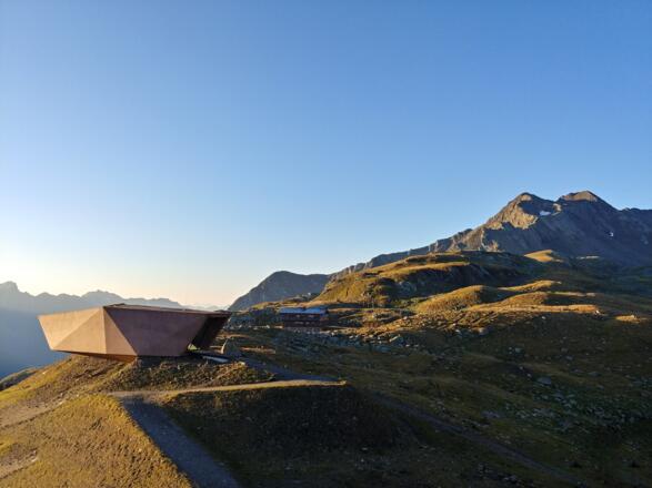Entlang der Gurgler Ache führt der Weg über schöne Wiesen, bevor er ins Timmelstal abzweigt, im Verlauf leicht ansteigt und nach einer Weile auf den idyllisch gelegenen, plätschernden Timmelsbach trifft. Bald darauf wird die Timmelsjoch Hochalpenstraße erreicht und nach einem Aufstieg recht schnell wieder auf einem Pfad, der über karge Schafweiden und Schrofenhänge hinauf zum Timmelsjoch führt, verlassen. Dort angekommen, gibt es die Gelegenheit, Erfahrungen in einem Wanderbuch festzuhalten. Ein eigener Prägestempel ermöglicht es, bleibende Erinnerungen zu bewahren. Für Interessierte bietet sich hier ein Besuch des Passmuseums und der neuen musealen Struktur Timmel_Transit ebenfalls an. Diese Museen gehören so wie der Steg mit Aussichtsplattform, die Schmuggler Skulptur, das Fernrohr und der Granat zur „Timmelsjoch Erfahrung“. Diese Installationen sind entlang der mittlerweile seit 50 Jahren bestehenden Timmelsjoch Hochalpenstraße zu entdecken.
