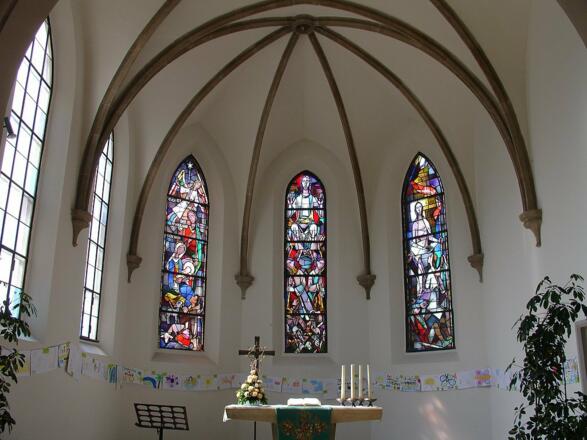 1862/63 Errichtung der Kirche im neugotischen Stil. Erweiterungen 1908/09 und 1961/62. Im Inneren des modernen Kirchenbaus wird der Blick zum neugotischen Chor mit den drei Glasfenstern gelenkt, die