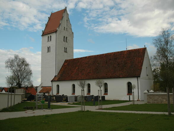 Die Pfarrkirche St. Laurentius mit mächtigem Chorturm stammt aus dem 14. / 15. Jhd. Ursprünglich war der Kirchensatz alt-oettingischer Besitz und kam kurch Schenkung 1313 an die Johanniterkomturei