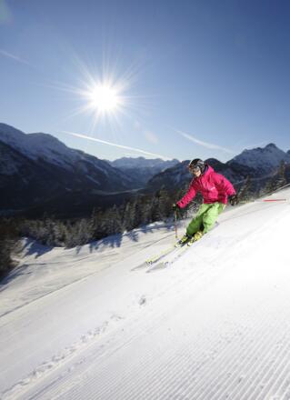 Das Familien-Skiparadies am Hohen Kranzberg in Mittenwald lädt Skifahrer, Snowboarder und Skitourengeher herzlich ein, die winterliche Natur der Alpenwelt Karwendel in vollen Zügen zu genießen. Das kleine, gemütliche Skigebiet in Mittenwald bietet vor allem Familien sowie Ski- und Snowboard-Anfängern optimale Bedingungen, um auf bestens präparierten Pisten schnell die richtige Technik zu erlernen.