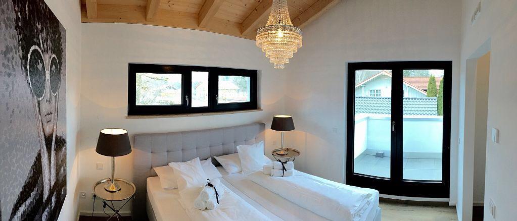 Exklusives und geschmackvolles Ferienhaus im oberbayrischen Loisachtal Achmühle - Das Haus umfaßt eine Wohnfläche von ca. 160m2. Es ist ausgestattet mit 4 Doppelschlafzimmern mit Boxspringbetten, 2 Bädern mit ebenerdigen Natursteinduschen und einem lichtdurchfluteten Wohn- und Essbereich mit Kamin und offener Küche. Im gesamten Wohnbereich ist hochwertiger Naturstein und in den Schlafräumen Echtholzboden verlegt. Der nicht einsehbare Außenbereich, dem seine Natursteinmauer einen Innenhofcharakter verleiht, lädt mit seinen Liegenstühlen und einem großzügigen Essplatz zum Verweilen unter freiem Himmel ein.