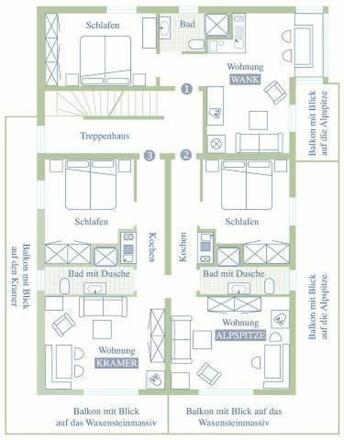 In sehr ruhiger Lage steht unser Ferienhaus im oberbayerischen Landhausstil mit herrlichem Blick auf das Alpspitz- und Waxensteinmassiv. Wanderwege und Langlaufloipe direkt vor dem Haus.