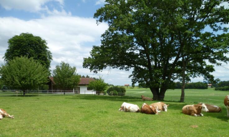 Autobahn A8 München-Salzburg; Abfahrt Bernau, über Prien, Rimsting, Breitbrunn nach Gstadt, durch den Ort hindurch, nach ca. 800 Meter links nach Aiglsbuch