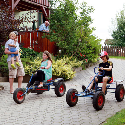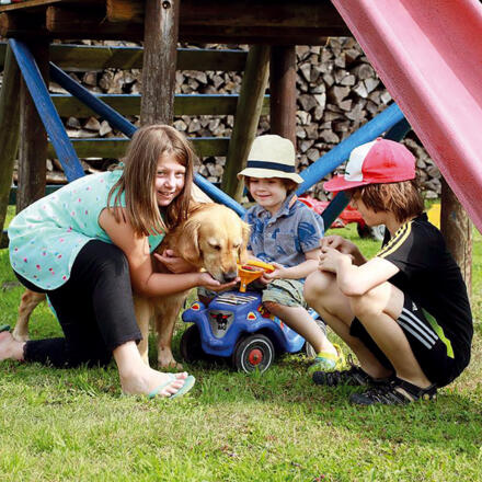 Ausreichend Abwechslung bieten unser großer Spiel- und Bolzplatz, ein ausgewählter Kinderfuhrpark, Tischtennis und ein