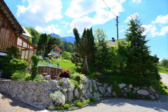 Auf einer kleinen Anhöhe in Bad Goisern, Ortsteil Sarstein, liegt unser Ferienhaus auf einem 3000 m² großen Grundstück in sonniger, ruhiger Lage, direkt am Waldrand mit einem wundervollen Ausblick auf die umliegende Bergwelt und ins Goiserer Tal.