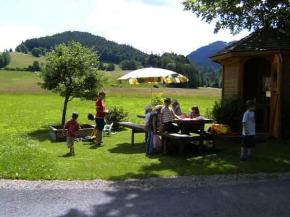 Unser Ferienhaus ist 8 km vom Dorfzentrum Faistenau entfernt und liegt direkt neben dem Biobauernhof "Laimergut".