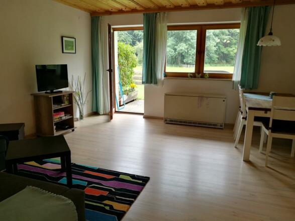 Unser Ferienhaus besteht aus 2 identischen Wohnungen und liegt neben unserem Bauernhof mit Kühen, Pferden und Katzen. Das Haus verfügt über einen eingezäunten Garten mit Sonnenterasse.