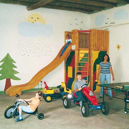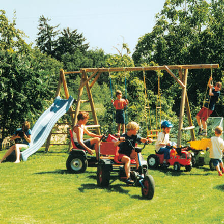 Ihren Kindern wird in unserer großen Spielscheune mit Spielecke (Kicker, kleine Kegelbahn, Tischtennis, Spielhaus mit Aussichtsturm und Rutsche) auch bei schlechtem Wetter bestimmt nicht langweilig. Unsere anderen vielfältigen Spielmöglichkeiten (Kett-Cars, Trikes, Traktoren, Sandkasten, Schaukel, Rutsche, Torwand, Riesentrampolin) laden zum Spielen,Toben und Hüpfen ein. Außerdem steht Ihnen unser hübsches Gartenhäuschen mit Gartenmöbeln und der Grillplatz mit Grill zur Verfügung.