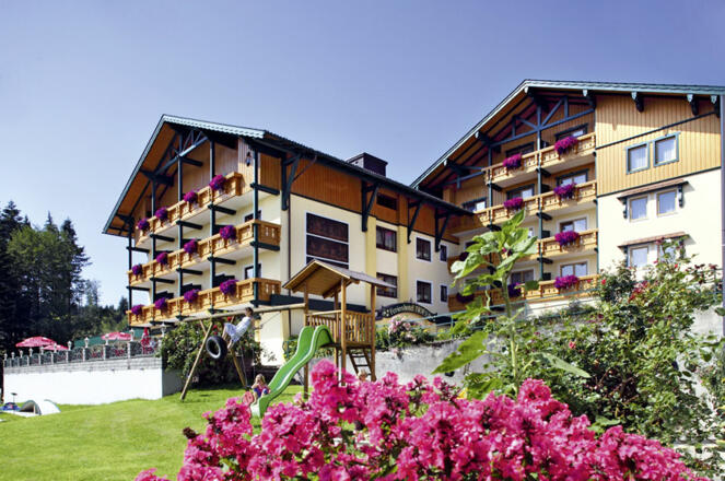 Erhoben über die Schönheiten des Salzkammerguts steht das Ferienhotel Hofer mitten auf einer bewaldeten Anhöhe unweit vom Attersee.